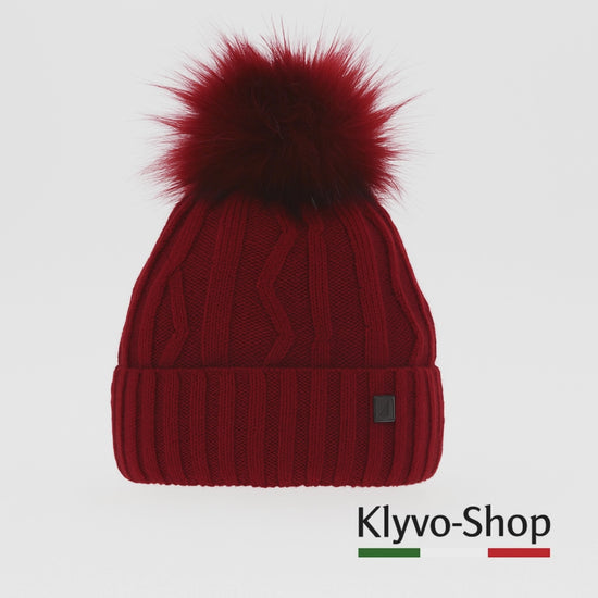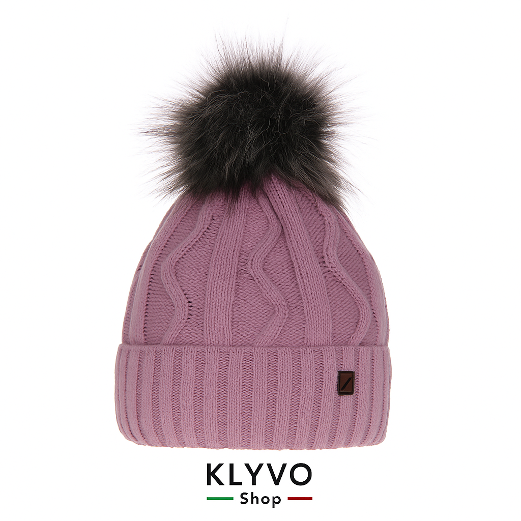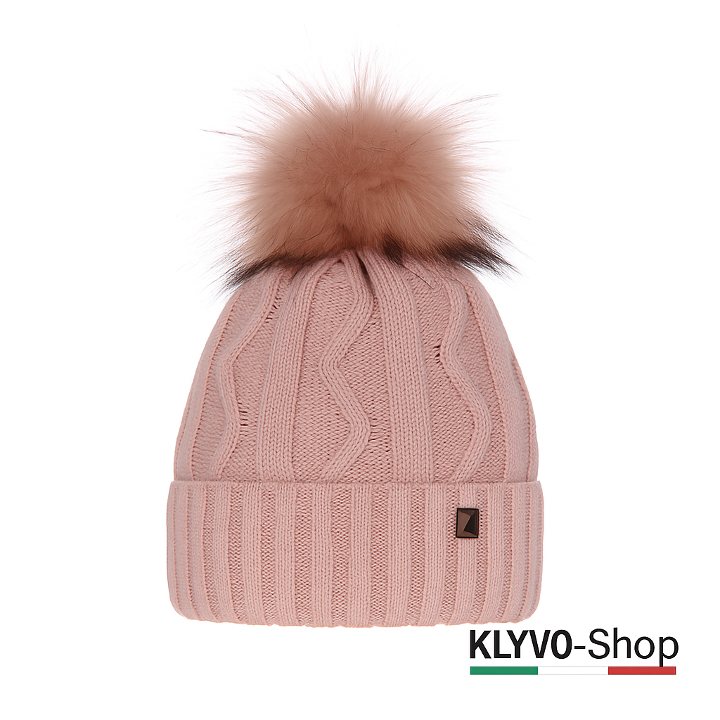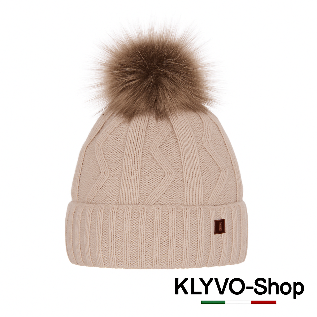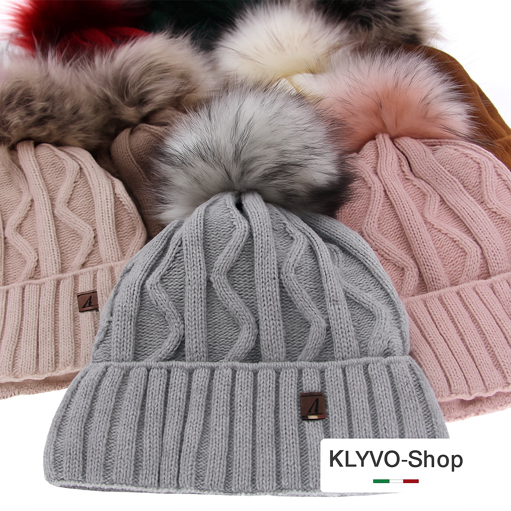 Berretto invernale elegante e caldo con soffice pompon in pelliccia ecologica, motivo a coste e fodera interna in pile. Elastico, confortevole e perfetto per ogni outfit invernale.