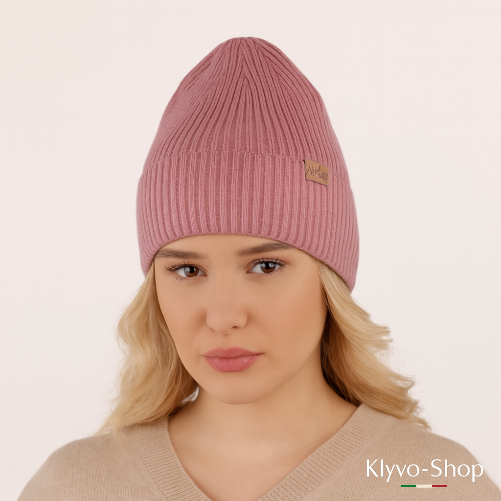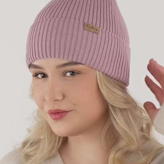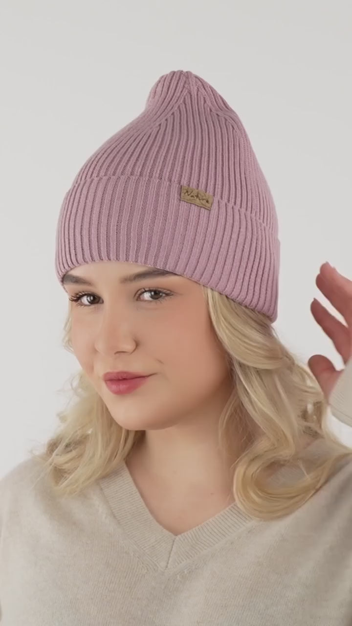 Cappello donna Messina in morbido cotone a maglia a coste con toppa “Nature”.